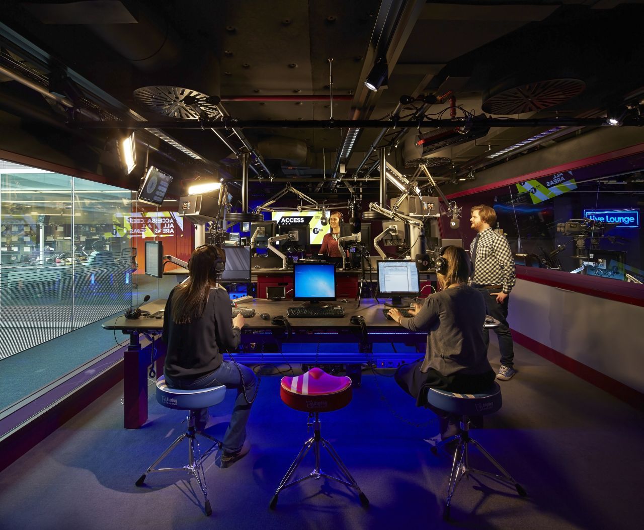 采用開放式布局,營造寬敞明亮的空間感,同時利用燈光和家具布置來增強視覺效果。例如,可以在墻壁上懸掛一些具有新聞特色的圖片或海報,或者設(shè)置一個展示新聞報道的展板區(qū)域。