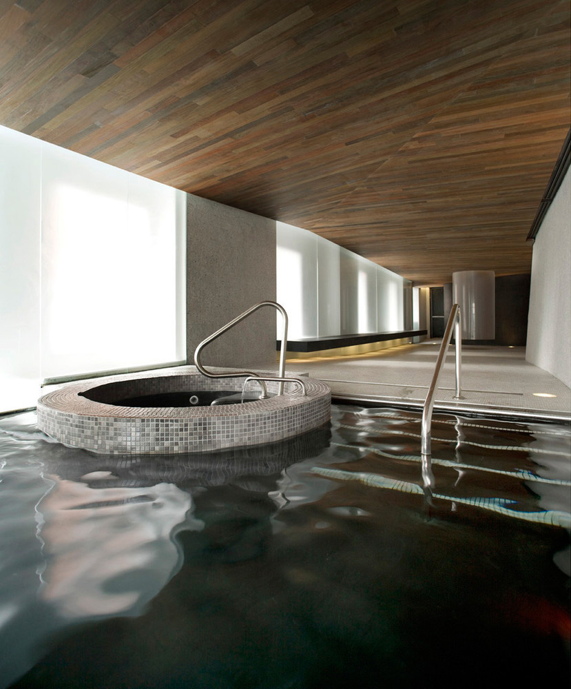 現(xiàn)代簡約洗浴中心通常提供各種水療設(shè)施和按摩服務(wù)等附加服務(wù)項目。因此,在裝修設(shè)計中可以加入一些水療元素的裝飾,比如流線型的墻面、弧形的地面等,以增加空間的流動感和視覺上的舒適度。